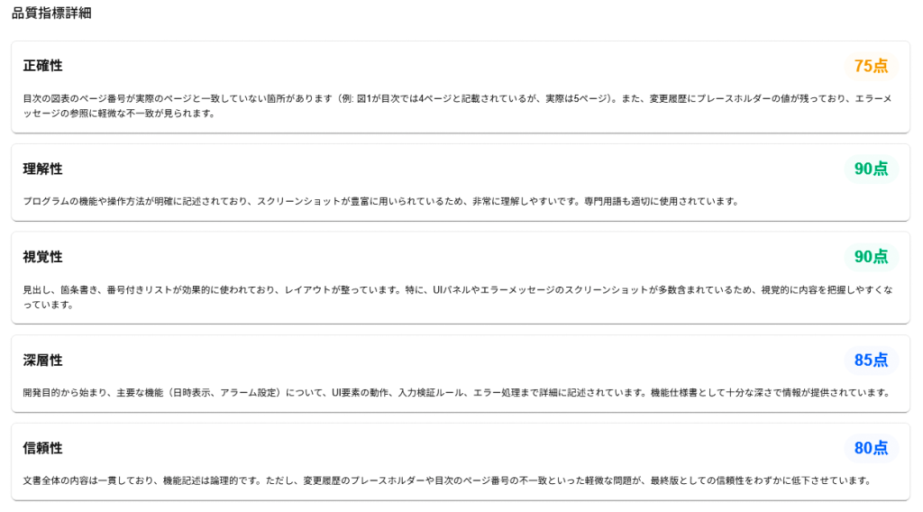 パーソルテンプスタッフのサービスに関する設計書や仕様書を、実際に「QuintSpect®」に投入し、AIによるレビュー結果を確認していただきました。