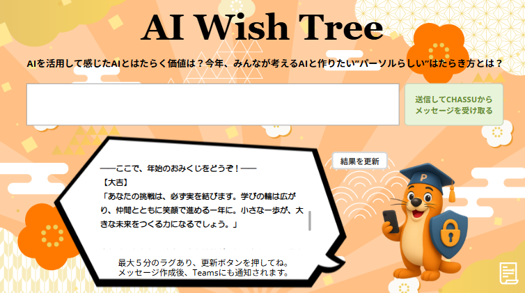そこで年末年始企画として、「AIとはたらく価値」「AIと作りたい“パーソルらしい”はたらき方」をAI Wish Treeに投稿していただき、